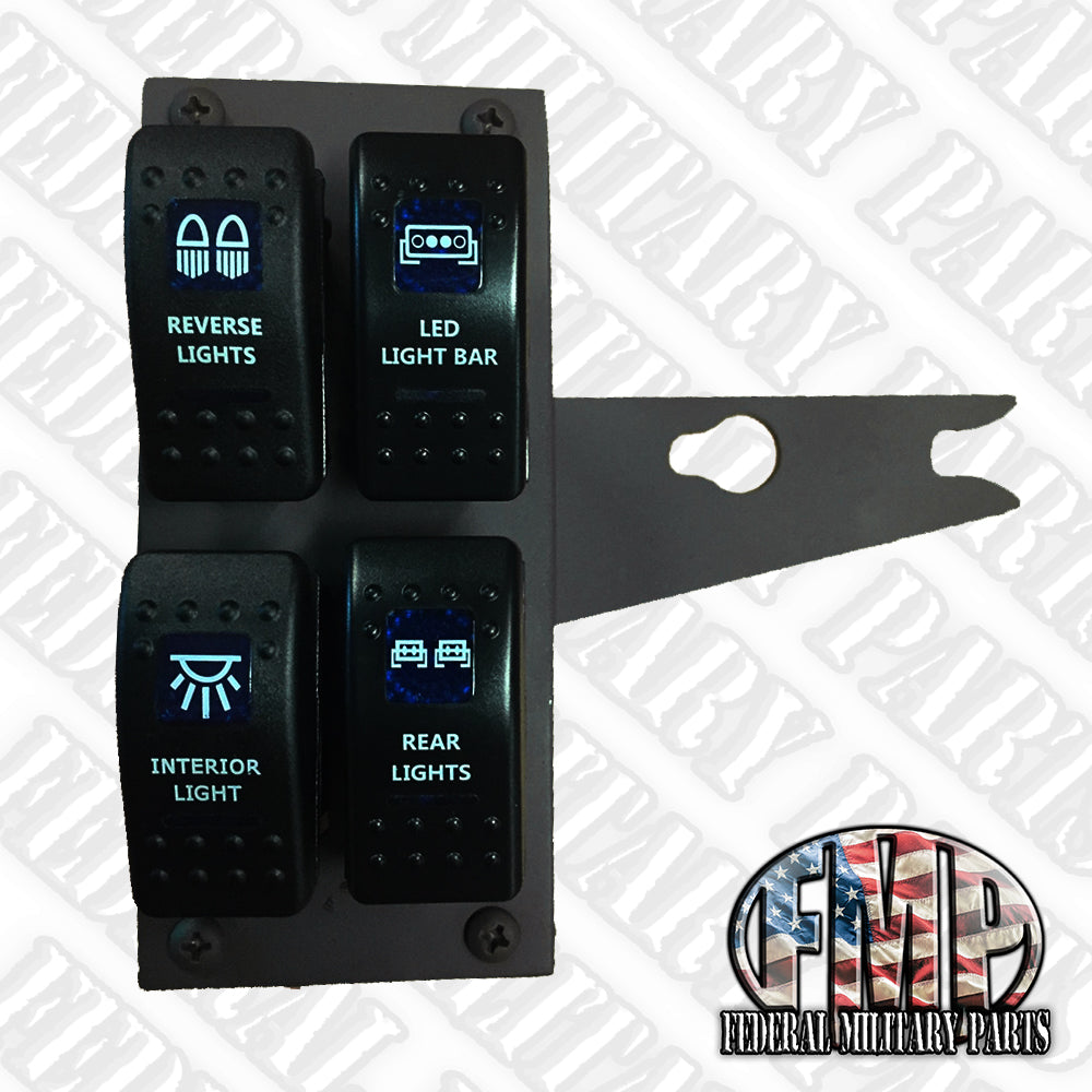 4-Gang Rocker Switch Panel + Box - with switches or without - Lights Fans Winch Etc. fits Humvee