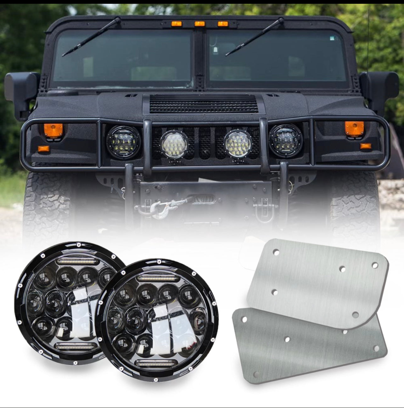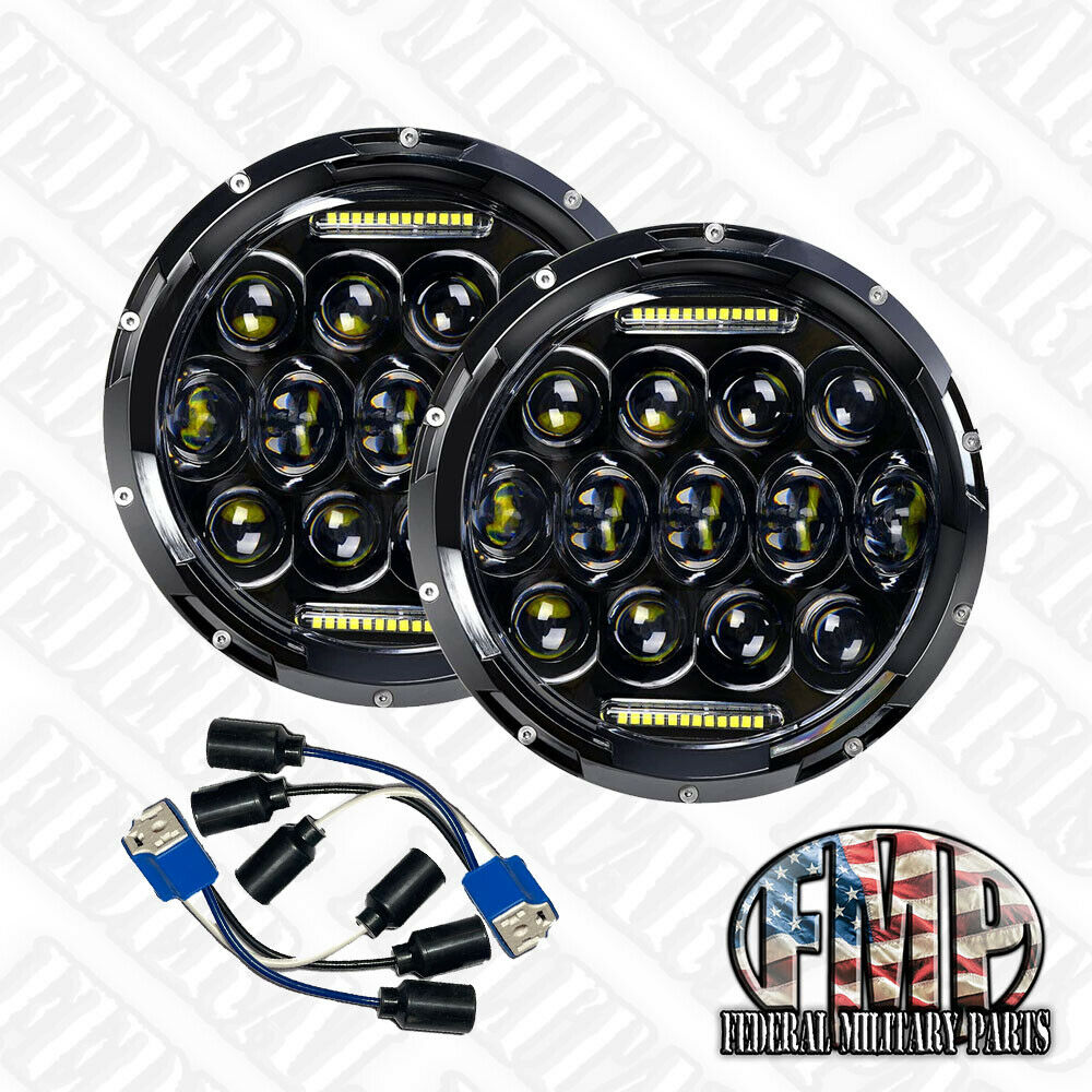 - INCLUDES: 4PC TOTAL- 2pc 2 x 7inch round led headlights, 2 x H4 to H13 adapter, + 2pc Aluminum Headlight Access Panels