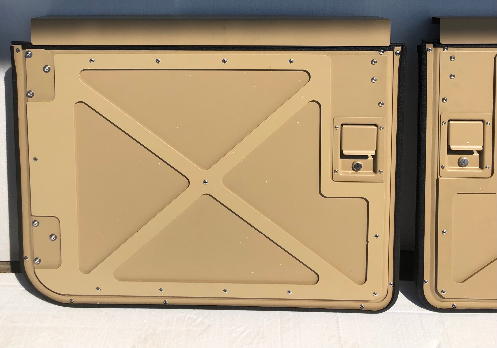 Övre halvan endast av fyra militära Humvee taktiska split dörrar. Denna artikel erbjuds endast till salu för de kunder som redan har köpt den nedre halvan och som senare vill konvertera halvdörrarna till fulla dörrar.